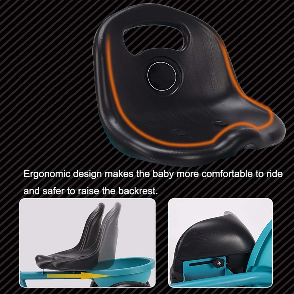 A sturdy kids trike made of metal with bars for pushing and steering. The tricycle has several functions. The handlebar can be removed. The soft handle and comfortable seat ensure a comfortable driving experience. The seat belt attached to the seat ensures a safe ride. 【Specifications】Product type: Children's tricycleSuitable age: 3-6 years oldColor classification: green, pink, redProduct material: high-quality steel + environmental protection PP materialLoad capacity: 25kgSize: 53x75x46cm Features: High back seat New inflatable tires Rear wheel One-button fast loadingWhether there is a parasol: NoWhether there is a storage basket: YesWhether to push: YesNote: 1. Due to lighting problems, the product and the picture may have a slight color difference, please refer to the actual product. 2. If you have any questions, please feel free to contact us.